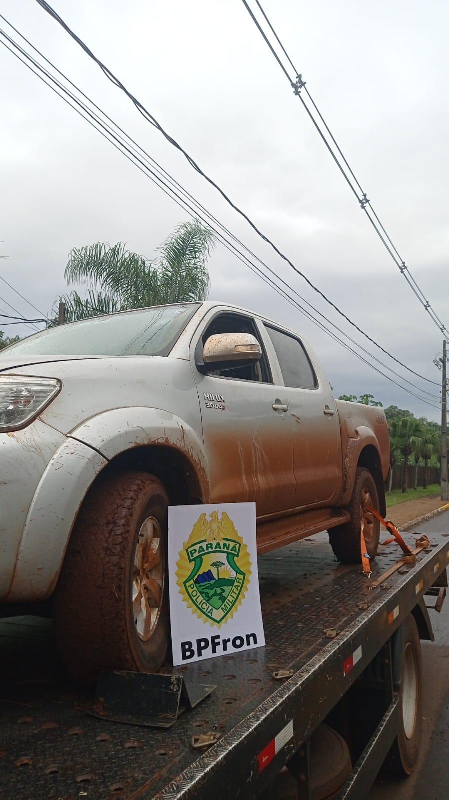 Ainda a equipe efetuou buscas nas proximidades, e em uma região de mata aonde também foi localizado homiziado outro veículo caminhonete, desta vez uma Fiat Toro que possuía em sua interna um par de placas que constava em outro veículo com as mesmas características, se tratando de um veículo clonado.