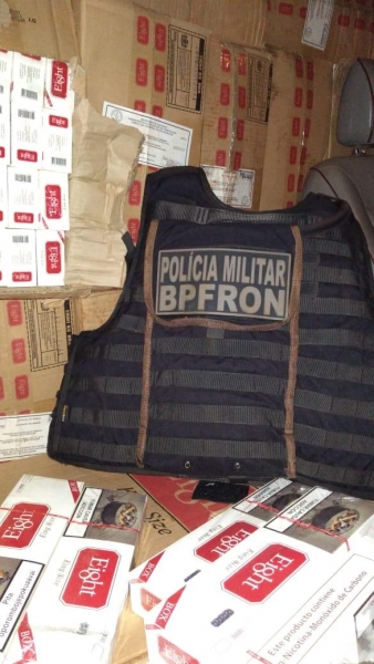No total foram apreendidos aproximadamente 2.200 pacotes de cigarros, um Radio HT, dois veiculos e também foi preso a pessoa de A.V, o qual relatou ser bandeira (olheiro).
