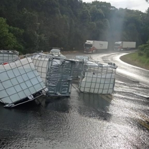 A BR-277 segue interditada no quilômetro 484, em Nova Laranjeiras, após o tombamento de uma carreta carregada com produtos químicos na manhã de terça-feira (30). De acordo com a PRF (Polícia Rodoviária Federal), ainda não há previsão para liberação do trecho.