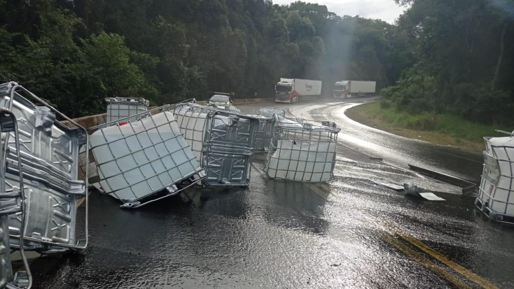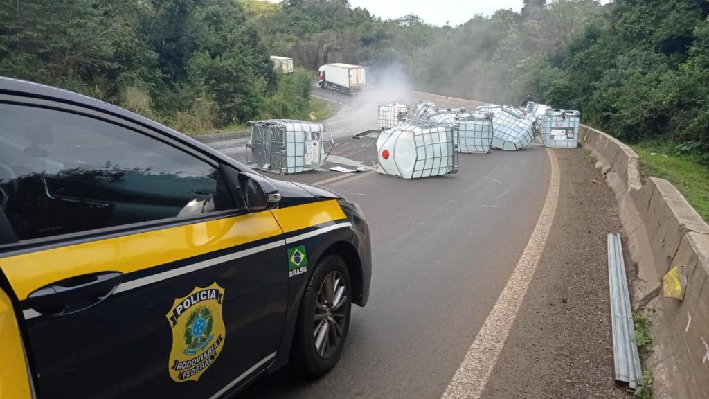 Conforme a PRF, os materiais que estavam na via foram recolhidos durante a madrugada desta quarta-feira (31), no entanto o pavimento ainda está sujo.