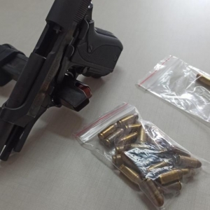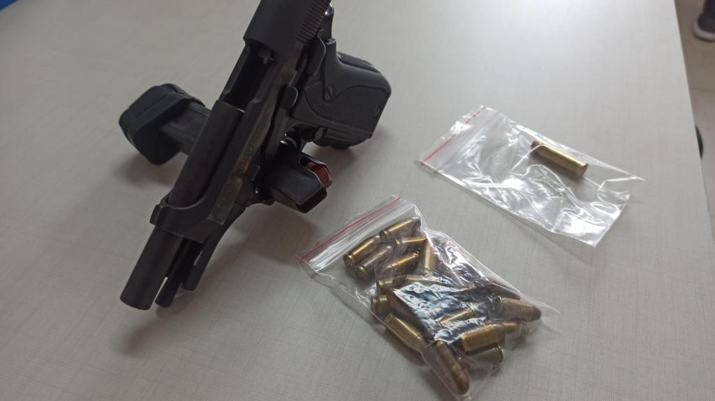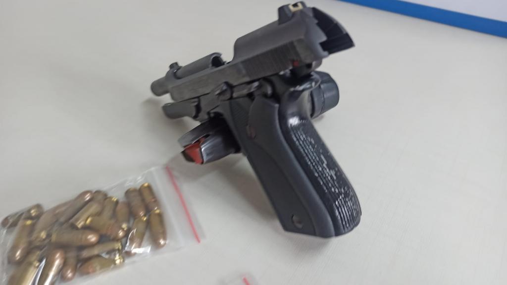No interior da casa, os agentes localizaram uma pistola calibre 9mm, quatro carregadores, 40 munições intactas, um coldre e um supressor de espingarda de pressão.