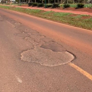 A pista está com vários buracos alguns maiores outros menores e defeitos também na rodovia de muito movimento o que podem ocasionar acidentes e o pior, podem causar acidentes graves.