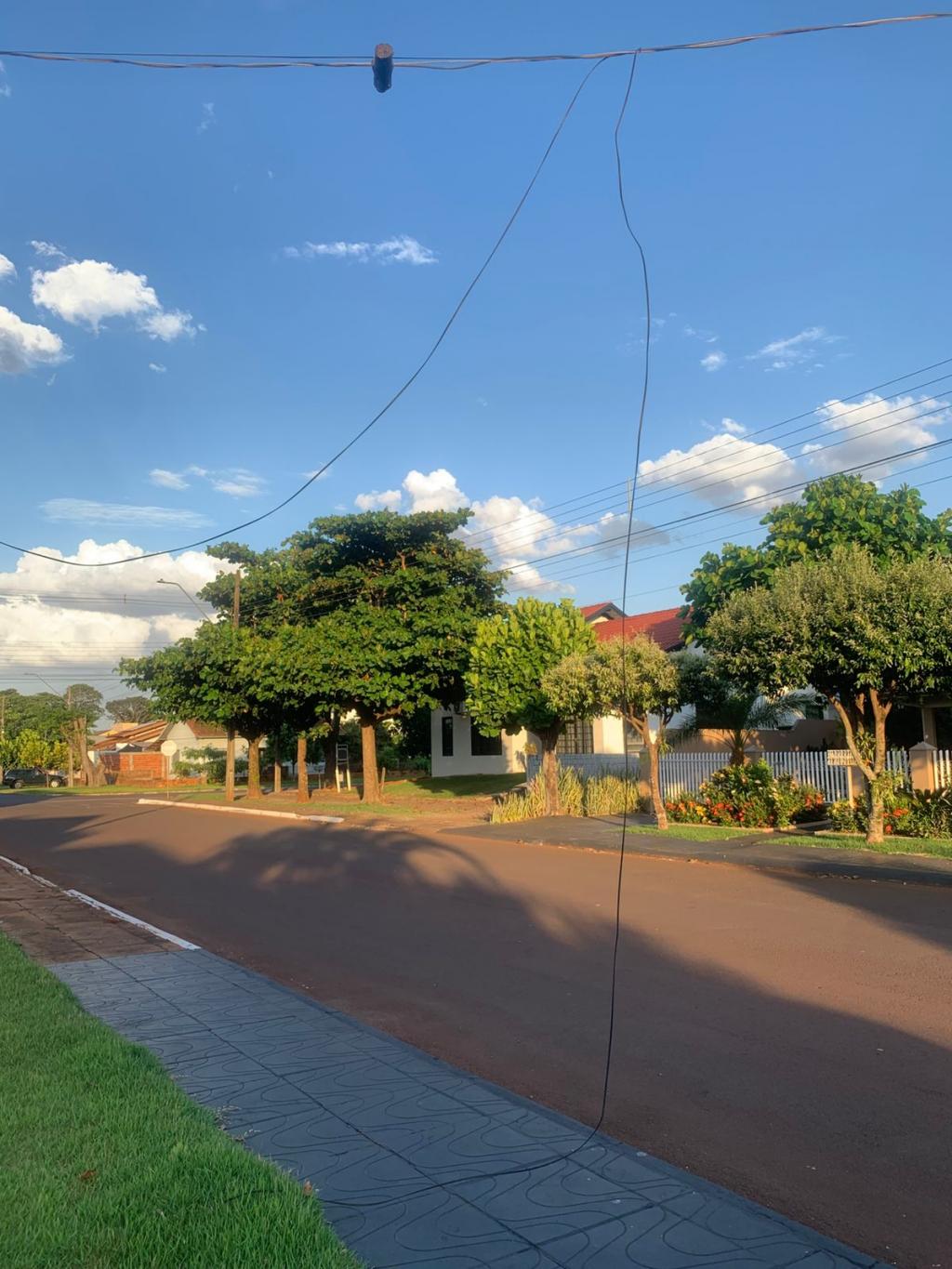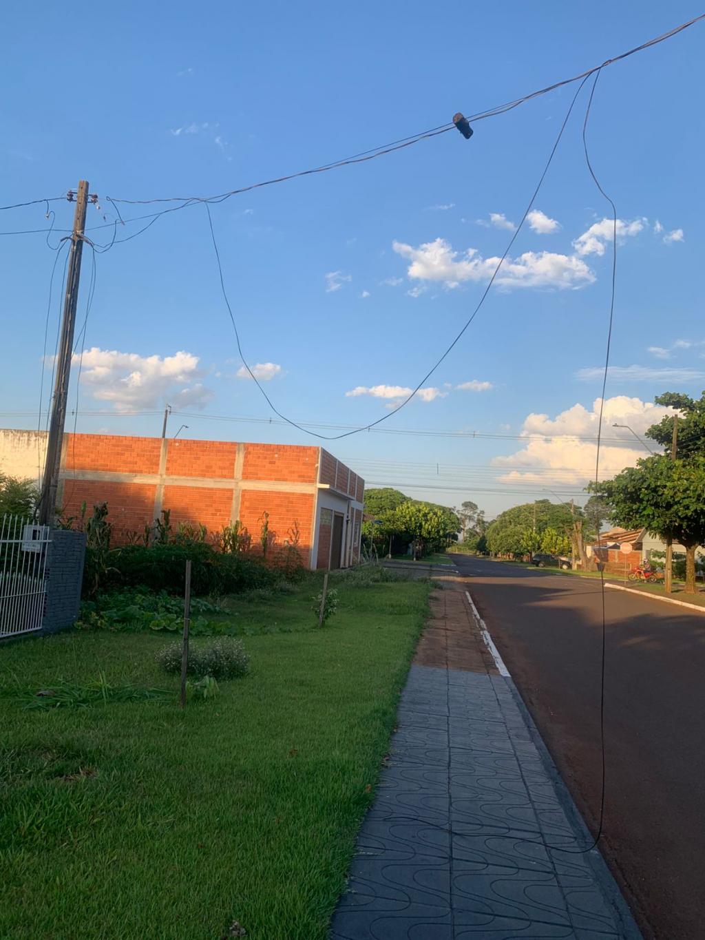 Um dos cabos, possivelmente de telefone, acabou arrebentando e ficou sobre a calçada às margens da via. No canto superior direito do vídeo é possível visualizar o fio arrebentado balançando.