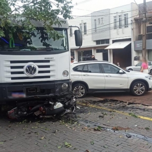 Um caminhão Volkswagen que presta serviços de coleta de lixo reciclável em Toledo colidiu com outros veículos que estavam estacionados na rua São João, centro da cidade.