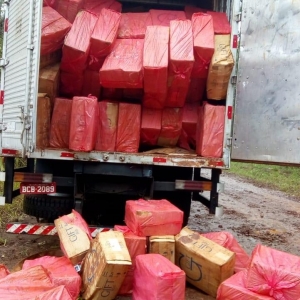 Um caminhão baú, com placas de Itapejara do Oeste, carregado com cerca de 400 caixas de cigarros do Paraguai foi apreendido pela Polícia Militar, entre os municípios de São Pedro do Iguaçu e Luz Marina, nesta quinta-feira (4).