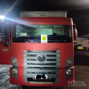 Um caminhão baú foi apreendido por volta das 23h40 da noite desta segunda-feira em Assis Chateaubriand quando a polícia realizava diligências pelo município e avistou o caminhão suspeito.