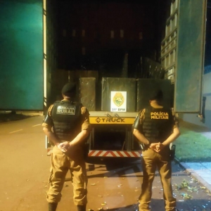 Foi na madrugada desta quinta-feira que a Polícia Militar em patrulhamento na linha São Roque, interior do município de Palotina avistou um caminhão baú que ao tentar abordar o condutor tentou fuga sendo alcançado e preso, o caminhão estava carregado com cerca de 500 caixas de cigarros, caminhão com placas adulteradas.