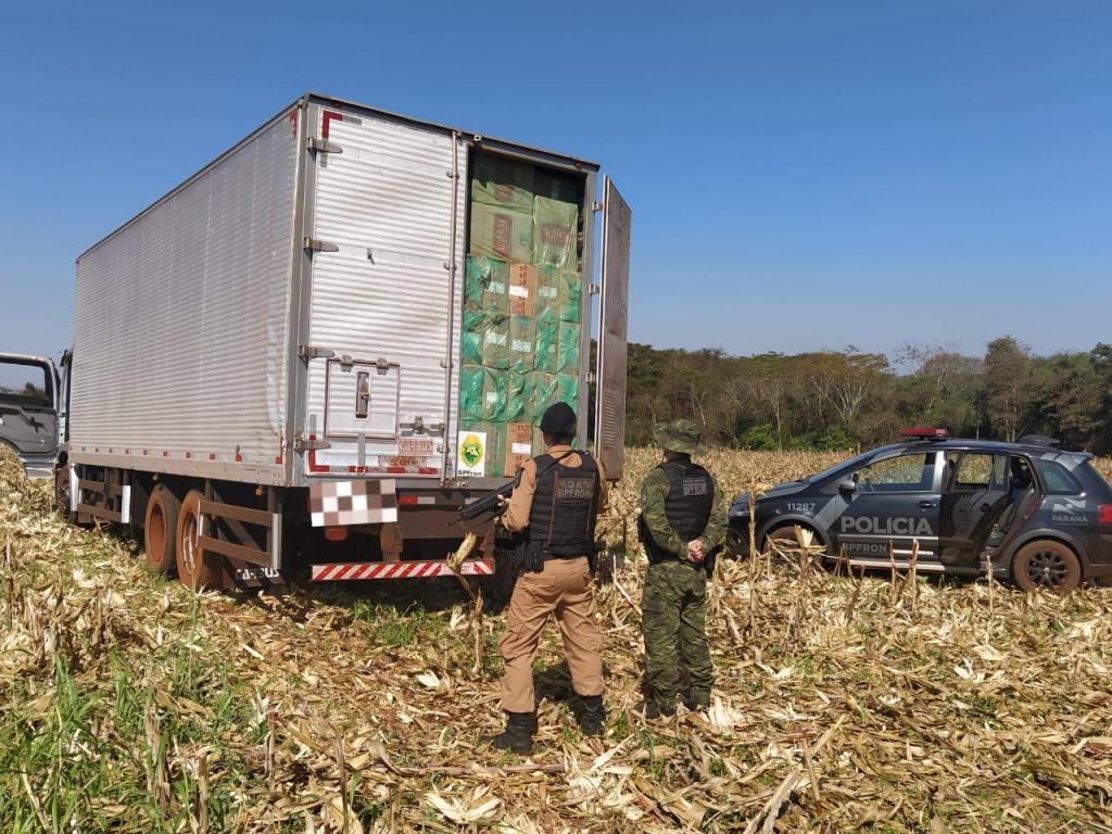 Na manhã de hoje (10), aniversário da PMPR- Policiais Militares do BPFRON - Batalhão de Polícia de Fronteira, em ação da Operação Hórus quando em patrulhamento em Guaíra , avistaram um caminhão baú na cor prata em alta velocidade, a uma certa distância. Foi feito o cerco com o intuito de realizar a abordagem ao caminhão, sendo que em determinado momento o caminhão seguia dentro de uma plantação colhida.