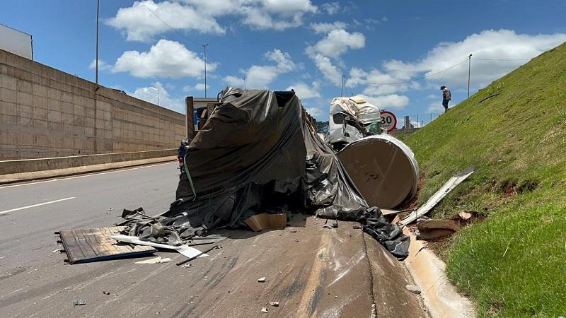O veículo de carga seguia na BR-277, momento que pegou alça de acesso para a BR-369, atingiu uma mureta e tombou. Bobinas chegaram a rolar pela via. Conforme informado à reportagem, o caminhão carregou em Assunção no Paraguai com destino a Feira de Santana, na Bahia.