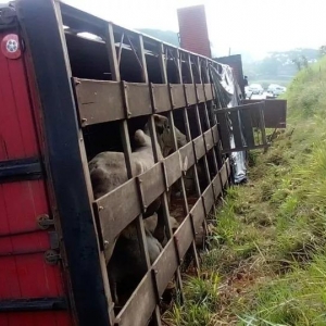 O motorista do veículo relatou que foi fechado por um outro caminhão e foi parar no acostamento da rodovia. O motorista não teve ferimentos, mas quatro animais morreram neste acidente.