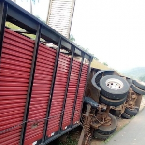 Um caminhão carregado com bovinos tombou no início da madrugada desta terça-feira (6) e interditou parcialmente a BR-277, em Campo Largo, na Região Metropolitana de Curitiba (RMC).