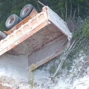 No veículo estavam duas pessoas, um homem de 23 anos, e o condutor com idade entre 55 e 65 anos, momento em que um determinado ponto de uma descida, ocorreu o acidente. O caminhão passou reto em uma curva, subindo no barranco e tombando logo em seguida.