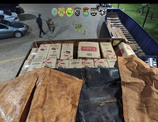 O caminhão estava carregado com cerca de 600 caixas de cigarro paraguaio.