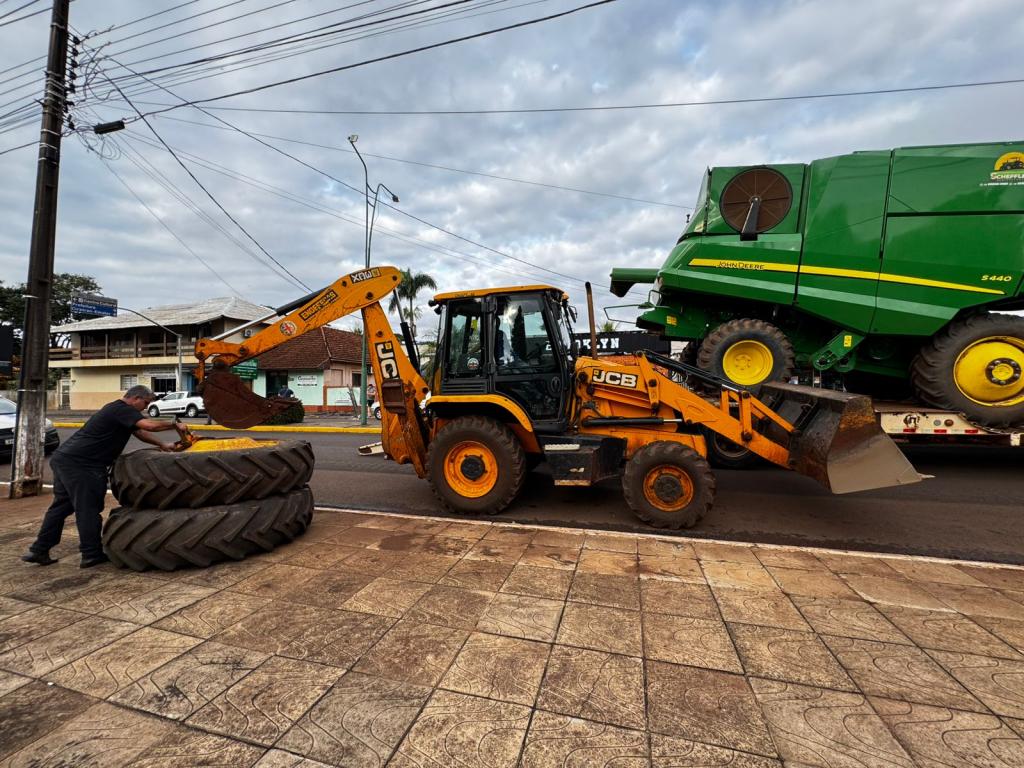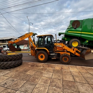 A Polícia Militar foi acionada para registrar a ocorrência e organizar o trânsito. Populares colaboraram com a situação, e o prefeito Lari Hitz esteve no local acompanhando a operação de retirada da máquina.