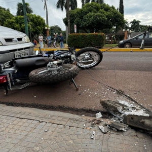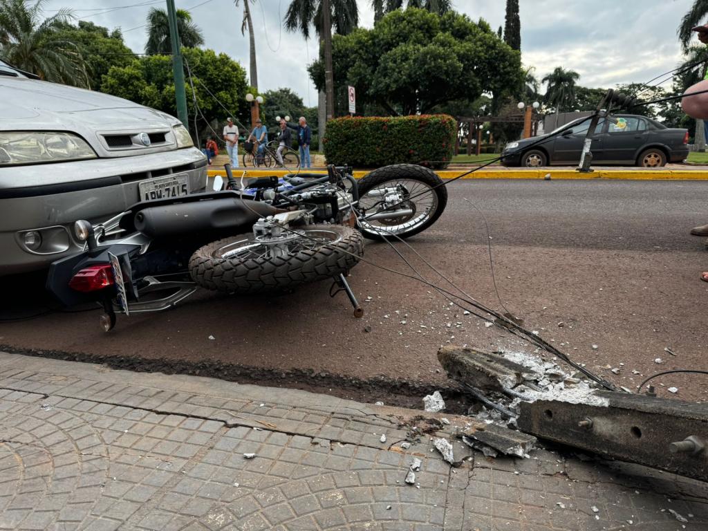 Com altura incompatível para a região central da cidade, o caminhão rompeu cabos de internet, derrubou uma motocicleta que estava estacionada e chegou a quebrar um poste de alta tensão. O motorista só parou após ser alertado por outro condutor, evitando que os estragos fossem ainda maiores.
