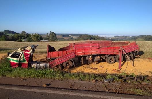 Conforme informações da Rádio São João, o acidente aconteceu após o motorista perder o controle da direção e sair da pista, ao tentar retornar o veículo desceu um barraco e acabou capotando. A carga de milho ficou espalhada pela lavoura e o veículo apresentou danos de grande monta.