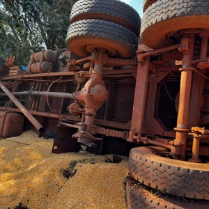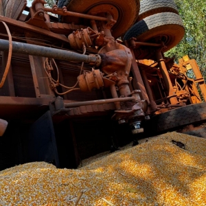 O condutor seguia com o veículo da lavoura rumo à uma cooperativa para descarregar o produto, quando o eixo da roda quebrou. Após percorrer cerca de 200 metros, o caminhão saiu da pista, a carga cedeu e o veículo tombou, ficando à beira de um barranco. A carga ficou espalhada pelo local.