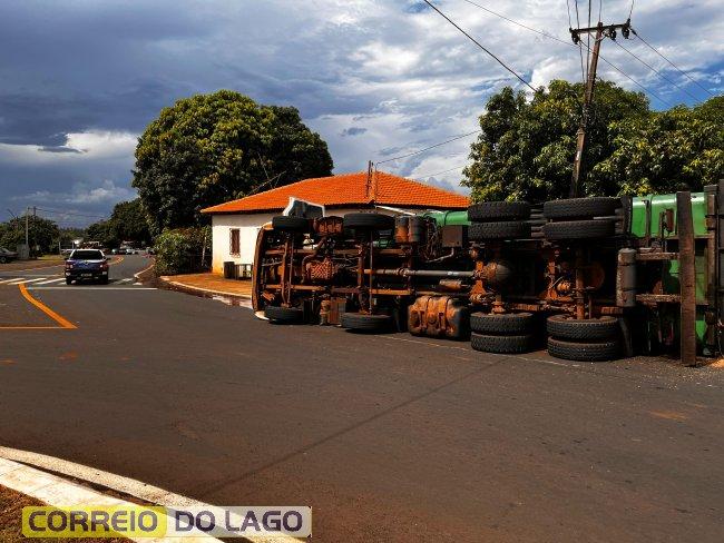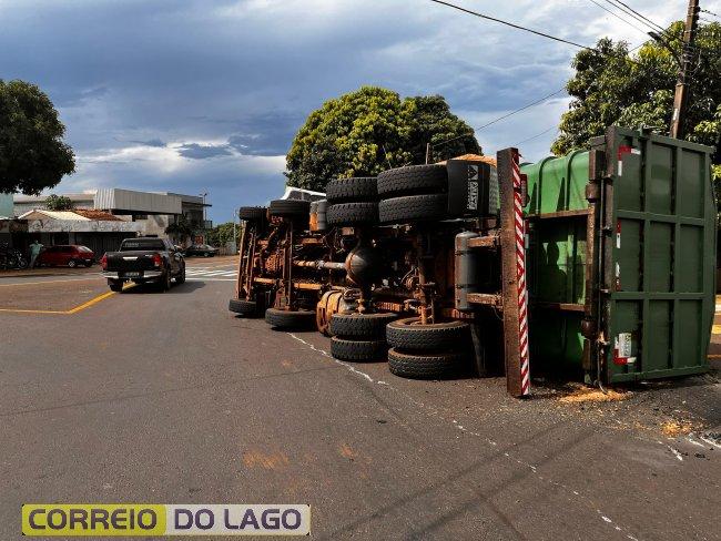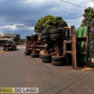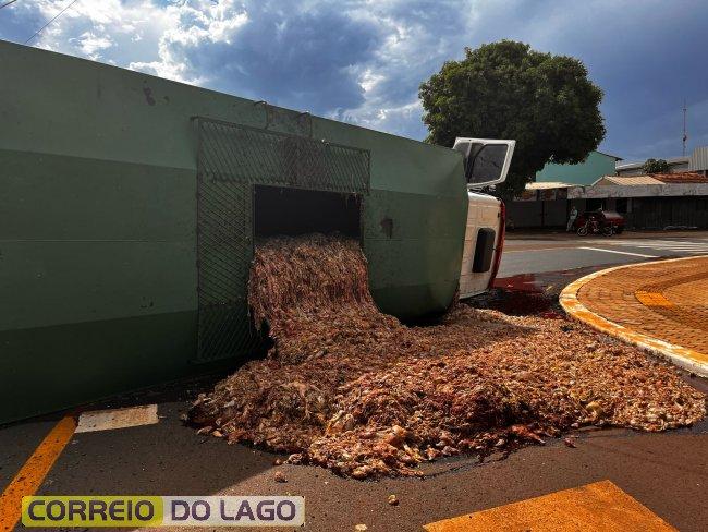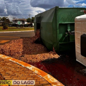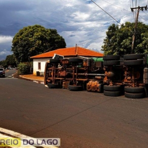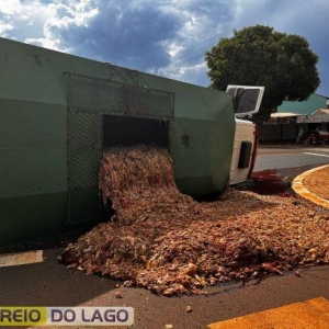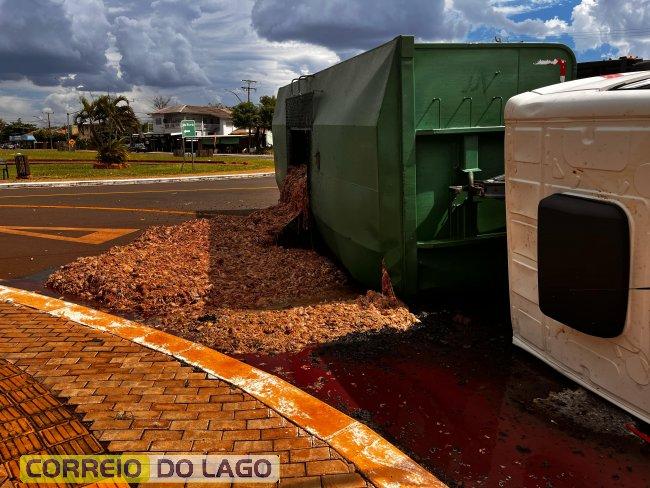 Na tarde desta quinta-feira (06), um caminhão carregado com vísceras de frang tombou nas proximidades do trevo de acesso ao município de Entre Rios do Oeste, no distrito de São Clemente, em Santa Helena.