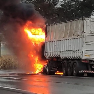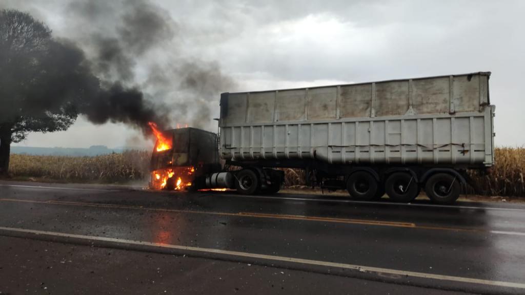 Nesta quinta-feira, um caminhão pegou fogo no km 555 da BR 277, próximo ao posto da PRF no município de Catanduvas.