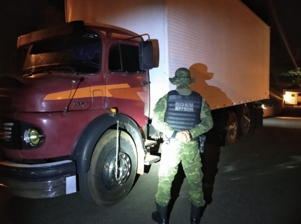 Policiais do Batalhão de Polícia de Fronteira, realizavam patrulhamento na área rural de São Clemente, distrito de Santa Helena, nesta sexta-feira (15) quando em certo momento visualizaram um caminhão Mercedes Benz, tipo baú, estacionado em meio a mata.