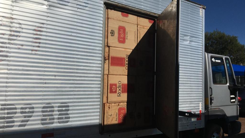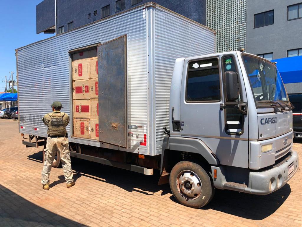 Na abordagem, foi constatado que o caminhão transportava cigarros paraguaios e o motorista foi preso em flagrante.