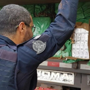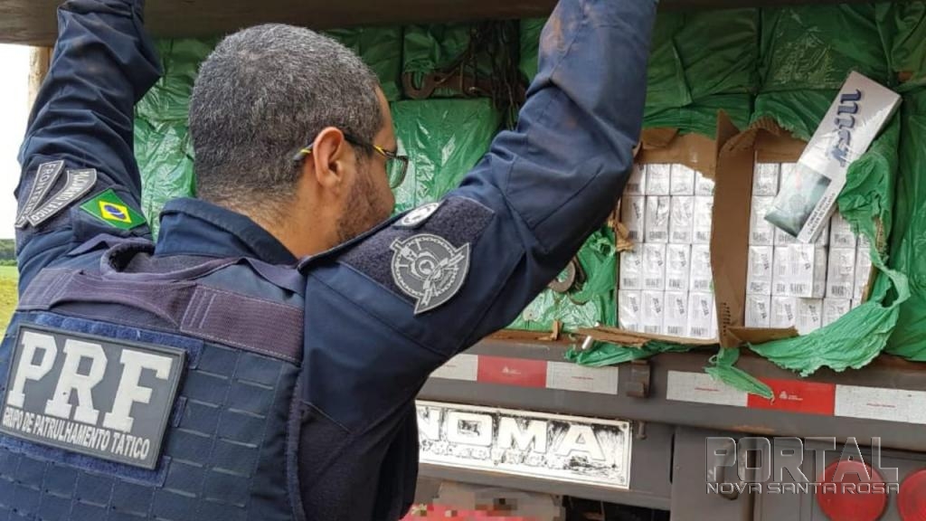 Foi apreendido na tarde desta sexta-feira (25), por volta das 14h00, um caminhoneiro conduzindo uma carreta completamente carregada com cigarros contrabandeados do Paraguai.