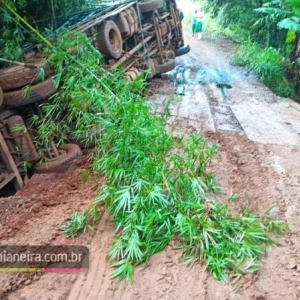 Do acidente resultaram danos no caminhão e na estrutura da ponte, que é de madeira. Ninguém se feriu.