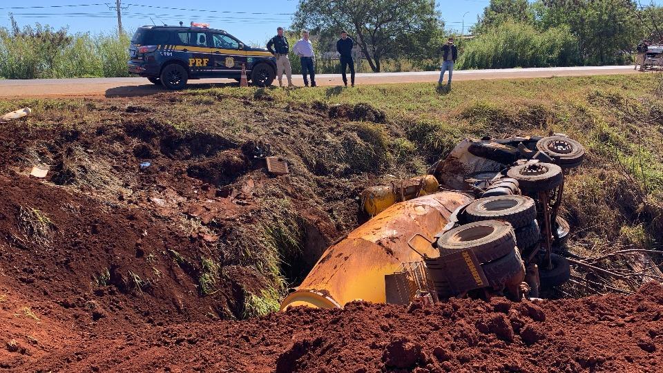 Conforme relatos, os veículos trafegavam em sentidos opostos quando houve a batida. Na sequência, o caminhão betoneira, que seguia sentido à Corbélia, acabou saindo da pista, e capotou em um barranco às margens da rodovia.