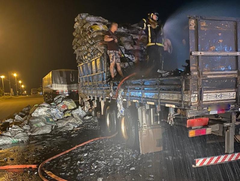 Conforme as informações, o fogo atingiu uma carga de 14 toneladas carvão, que estava sendo transportada por um caminhão Mercedes-Benz, na BR-163. Ao perceber o incêndio, no pátio de um posto de combustíveis na saída para Mercedes, o motorista acionou os bombeiros.