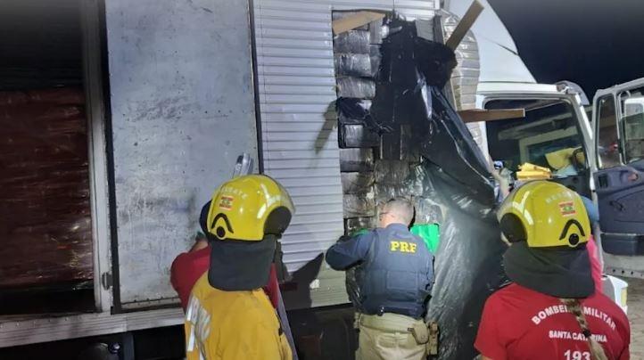 Na noite de ontem (27), policiais rodoviários federais apreenderam 2,1 toneladas de maconha escondidas no fundo falso de um caminhão na BR 480 em Chapecó.