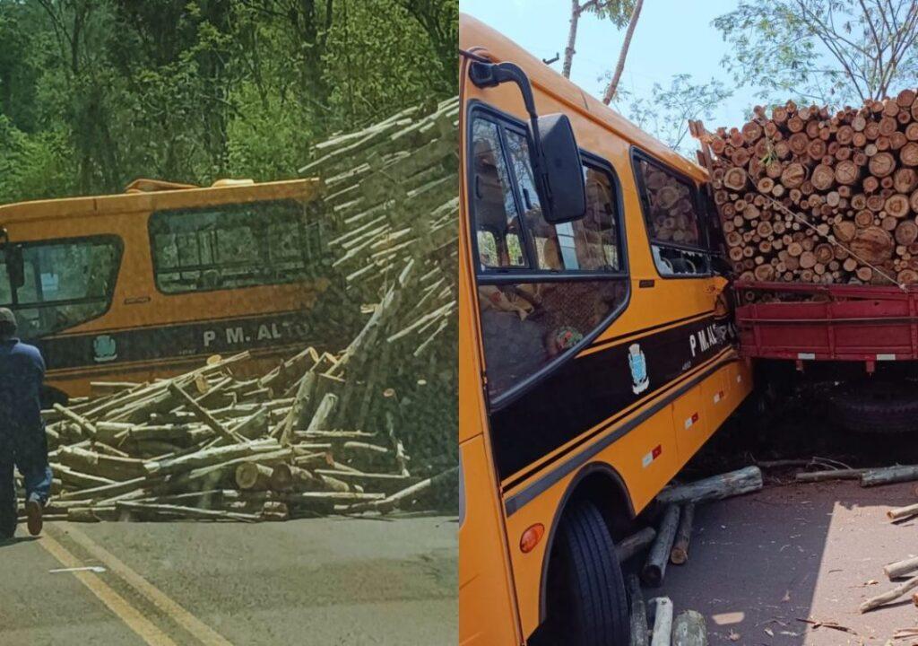 Um acidente de trânsito envolvendo um caminhão de lenha e um ônibus escolar de Alto Piquiri, ocorreu por volta das 13h de terça-feira (19), na PR 681, trecho Alto Piquiri a PR 486, e causou um grande susto aos dois motoristas, e também às pessoas que passavam pelo local no momento.
