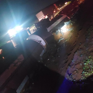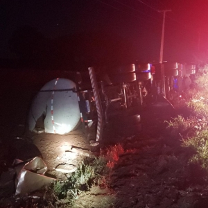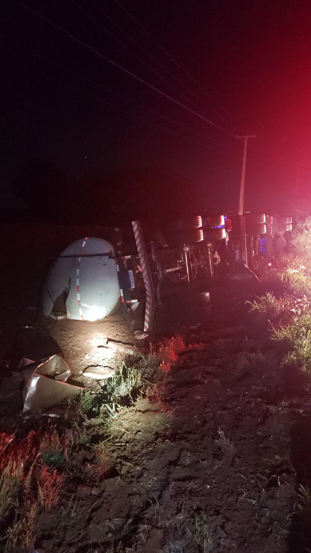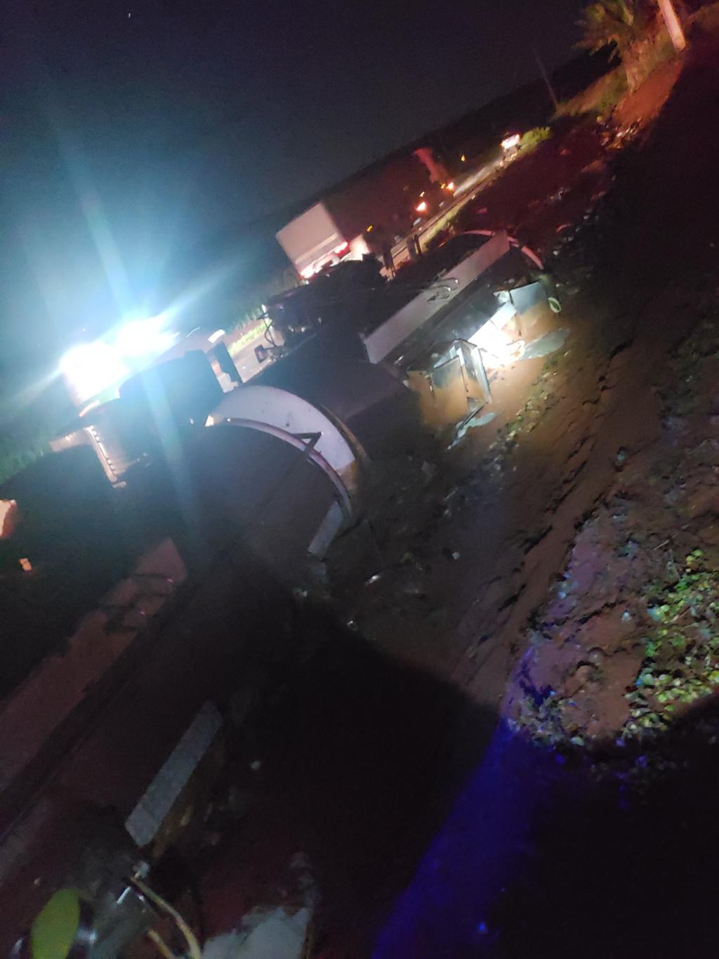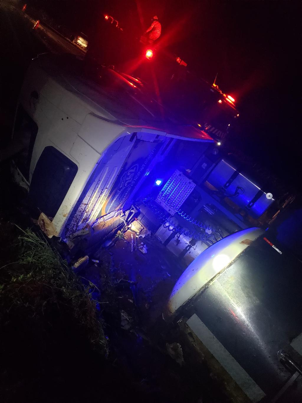 O acidente envolveu um caminhão carregado com soro de leite, pertencente a uma empresa de Marechal Cândido Rondon, que saiu da pista e tombou às margens da rodovia. Três pessoas estavam na cabine do veículo no momento do acidente.