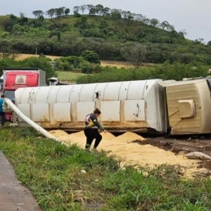 O motorista do caminhão que tombou também se machucou. Ele foi socorrido e encaminhado para atendimento médico.
