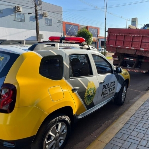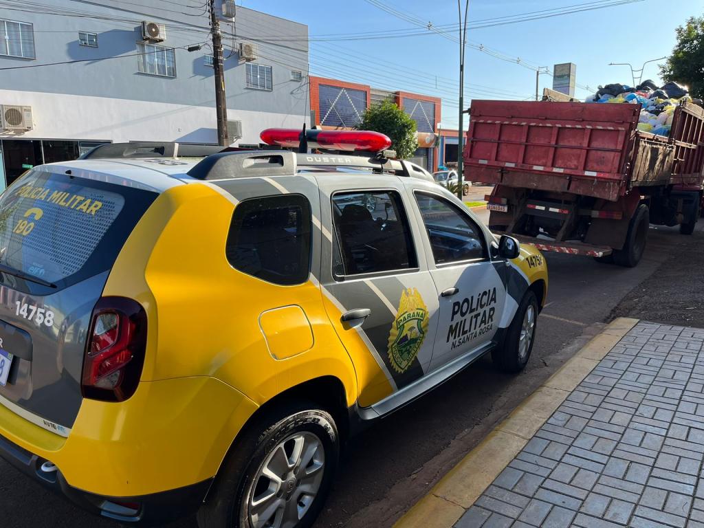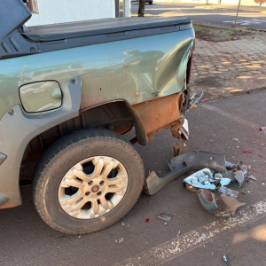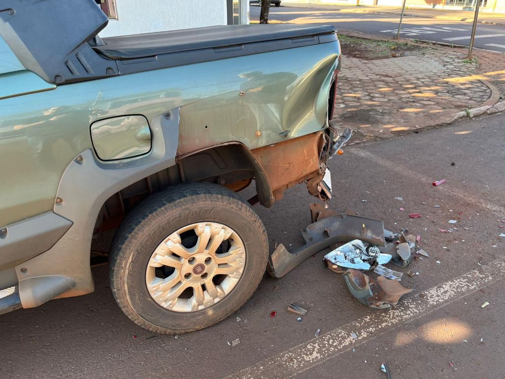 Um caminhão usado para recolhimento de lixo pertencente a uma empresa terceirizada que presta serviços a Prefeitura de Nova Santa Rosa colidiu contra um Fiat Strada que estava estacionado na avenida Santo Cristo, esquina com a rua Cruzeiro, próximo a agência dos Correios no centro de Nova Santa Rosa.