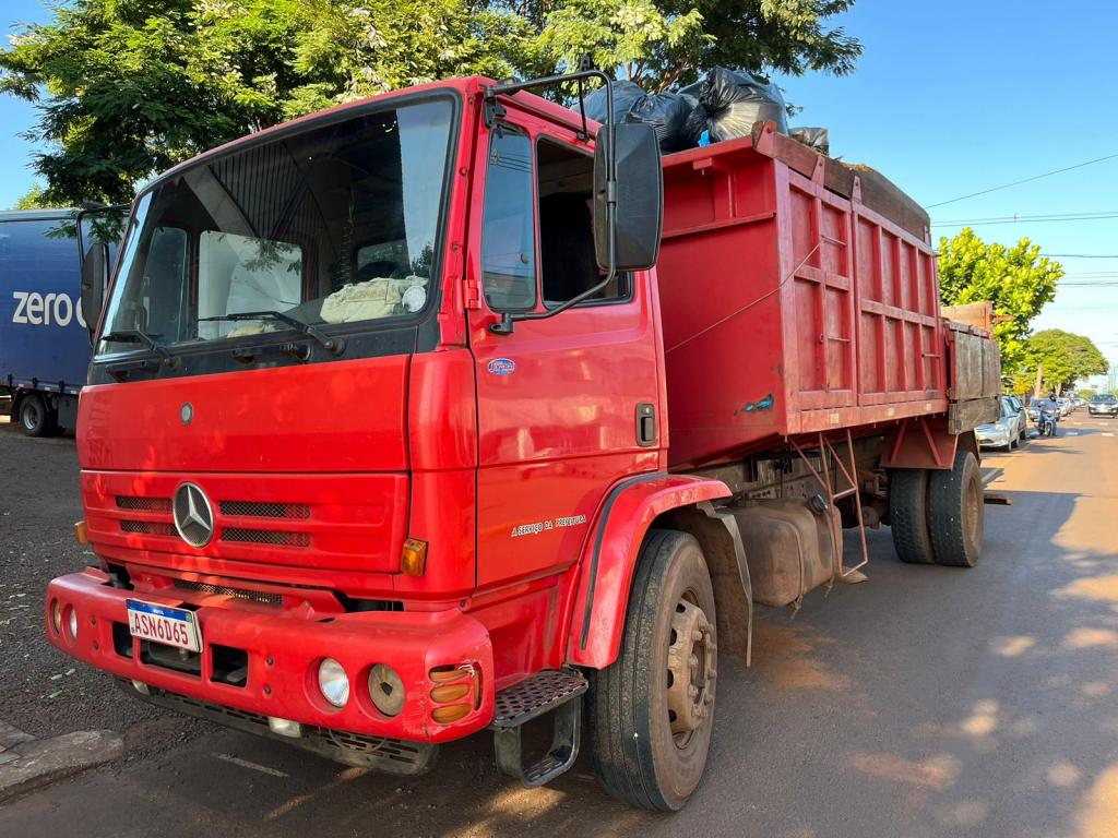 O caminhão usado para a coleta de lixo não é um caminhão adequado para o serviço, somente adaptado e ainda de forma irregular colocando em perigo os trabalhadores que realizam o serviço da coleta.