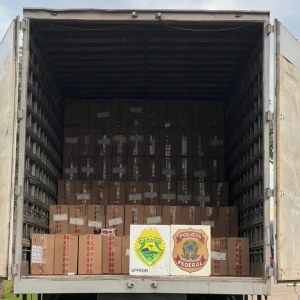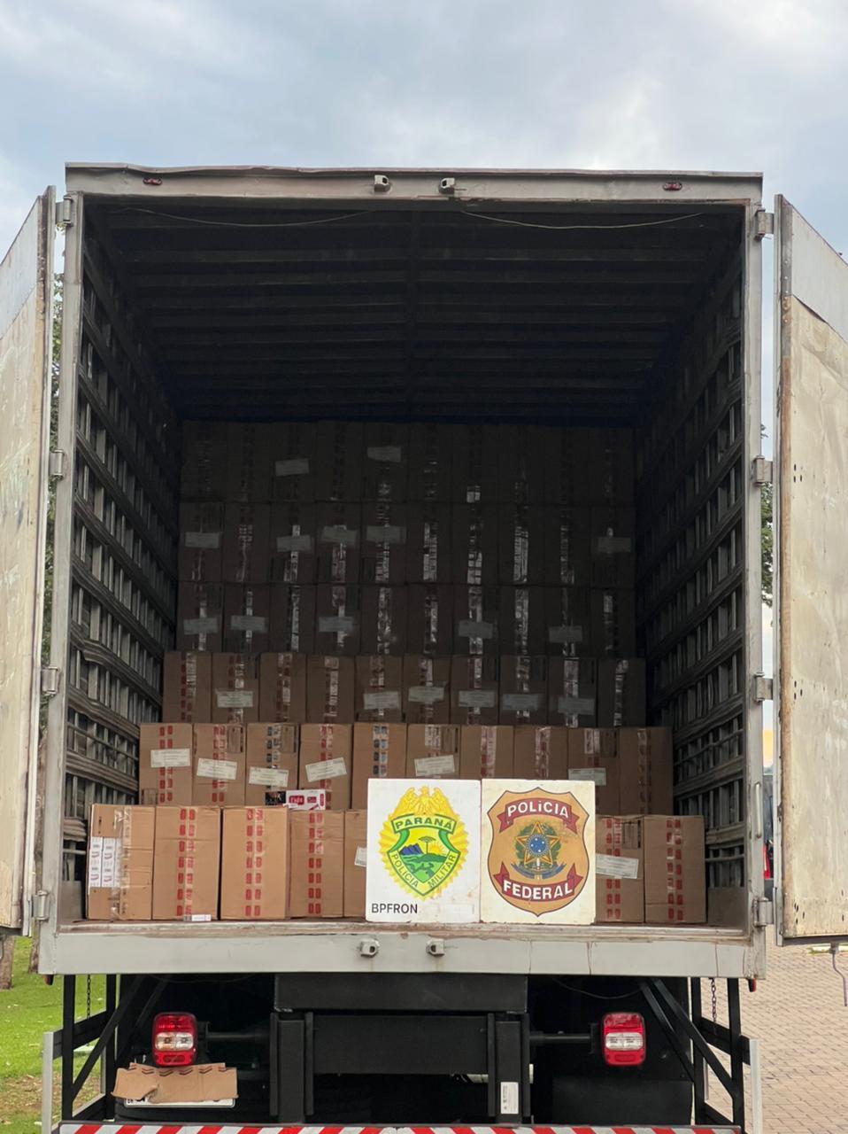 No local foram apreendidos um caminhão, uma embarcação e 22.500 pacotes de cigarros contrabandeados.