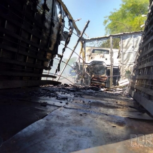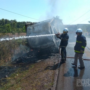 Foi quando o fogo que começou pequeno e se alastrou por toda a cabine e também no baú queimando totalmente o veículo.