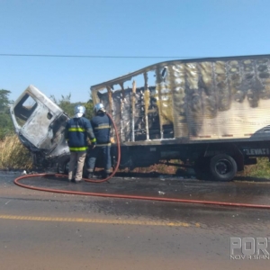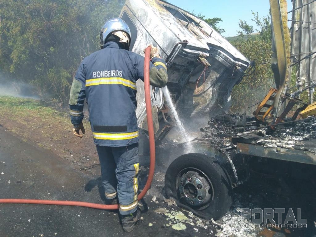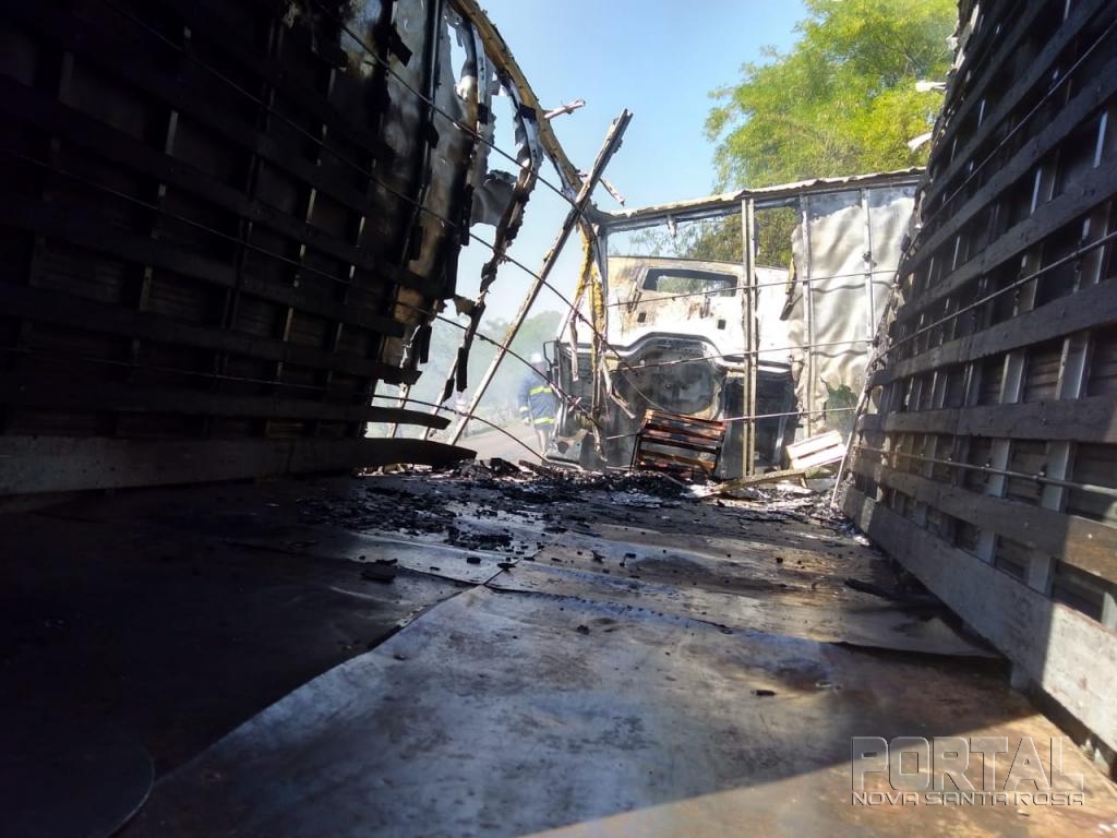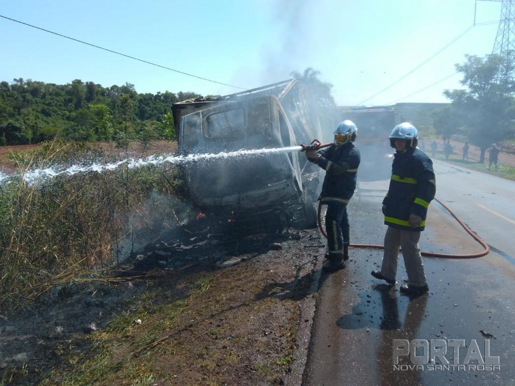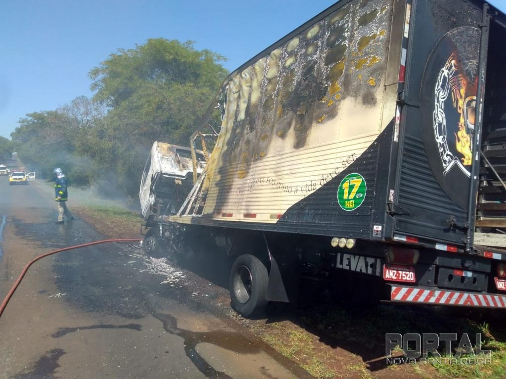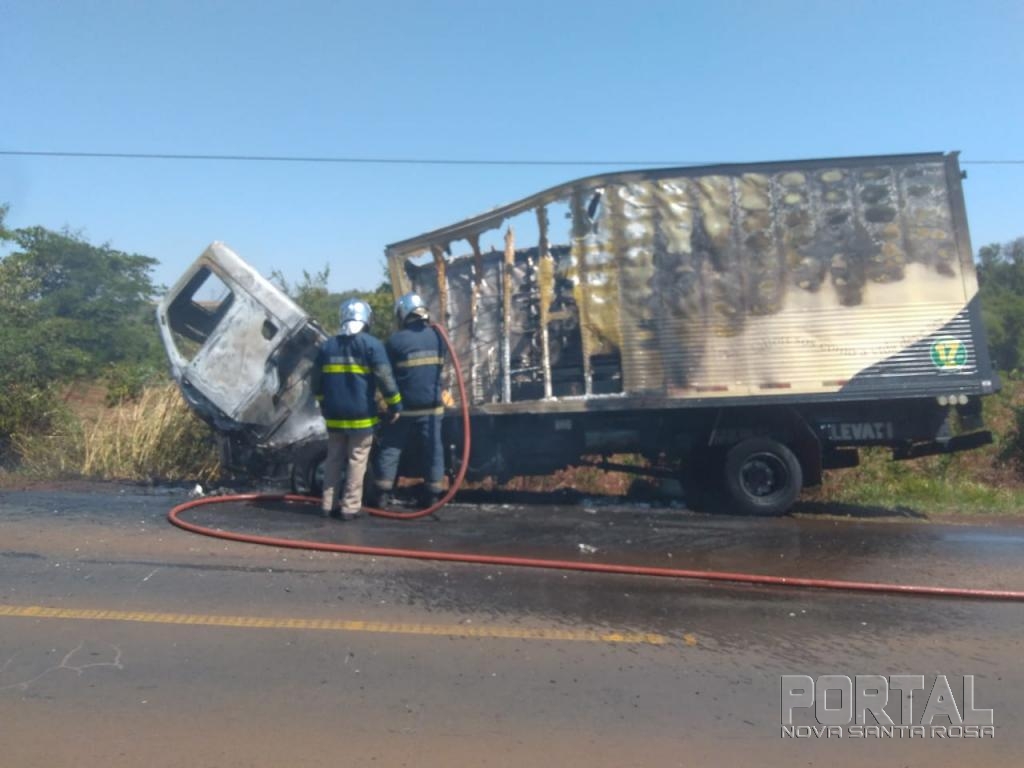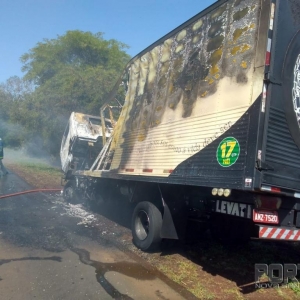 Um incêndio em veículo aconteceu na manhã desta quarta-feira na rodovia PR-585 que liga Toledo ao município de São Pedro do Iguaçu e envolveu um caminhão Mercedes Bens baú placas de Vera Cruz do Oeste conduzido por um homem de 45 anos.