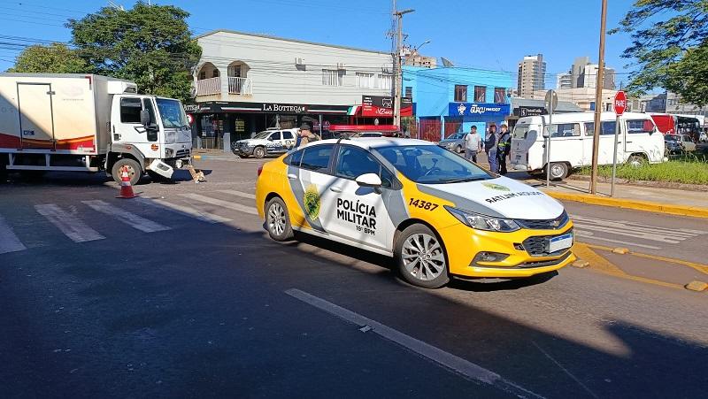 Um acidente envolvendo um caminhão e uma Kombi causou transtornos na manhã desta quarta-feira (30) no centro de Toledo. A colisão ocorreu no cruzamento das ruas Raimundo Leonardi e Rui Barbosa, nas proximidades da rodoviária.