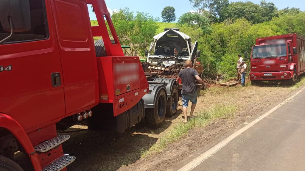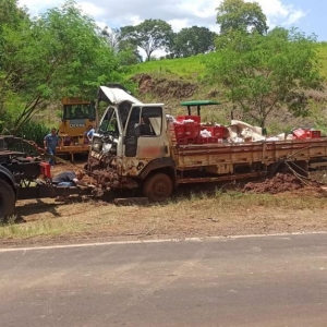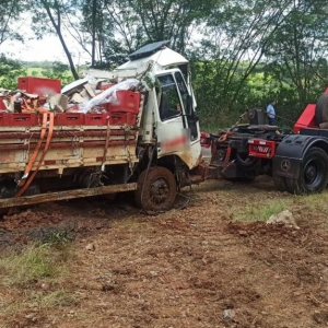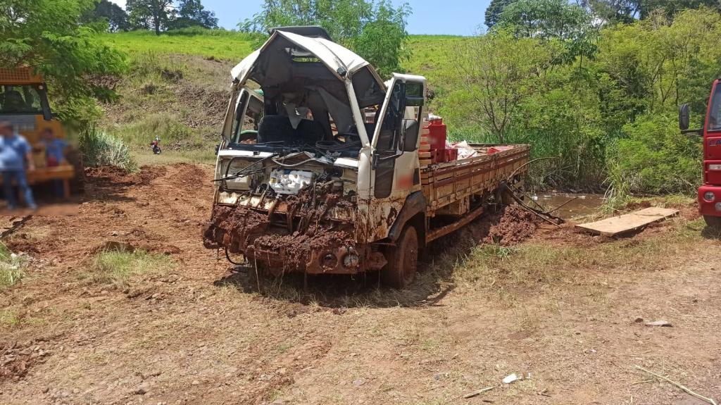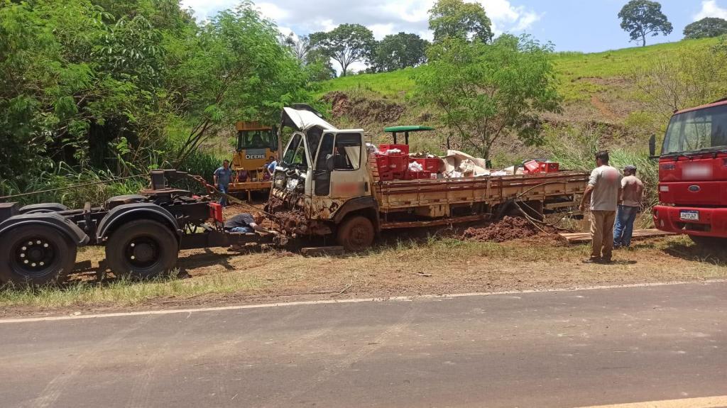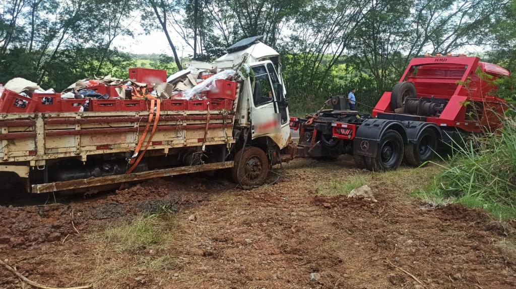 A ocorrência envolveu um caminhão Ford Cargo, com placas de Toledo, carregado com bebidas.