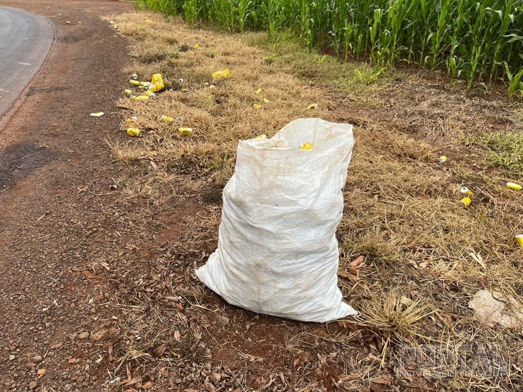 Na manhã deste sábado (20), na primeira curva na saída de Nova Santa Rosa sentido a Marechal Cândido Rondon, um caminhão carregado com caixas de latas de cerveja acabou perdendo parte de sua carga às margens da rodovia.