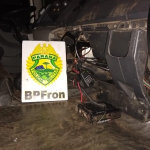 Que por meio de consulta via sistema verificou-se que o motorista tinha passagem anterior por contrabando na cidade de Marechal Cândido Rondon, e, durante a revista veicular, foi possível localizar um rádio comunicador oculto, instalado no interior do painel, contendo fiações que iriam para próximo do motorista e com botões para funcionamento dissimulado do rádio.