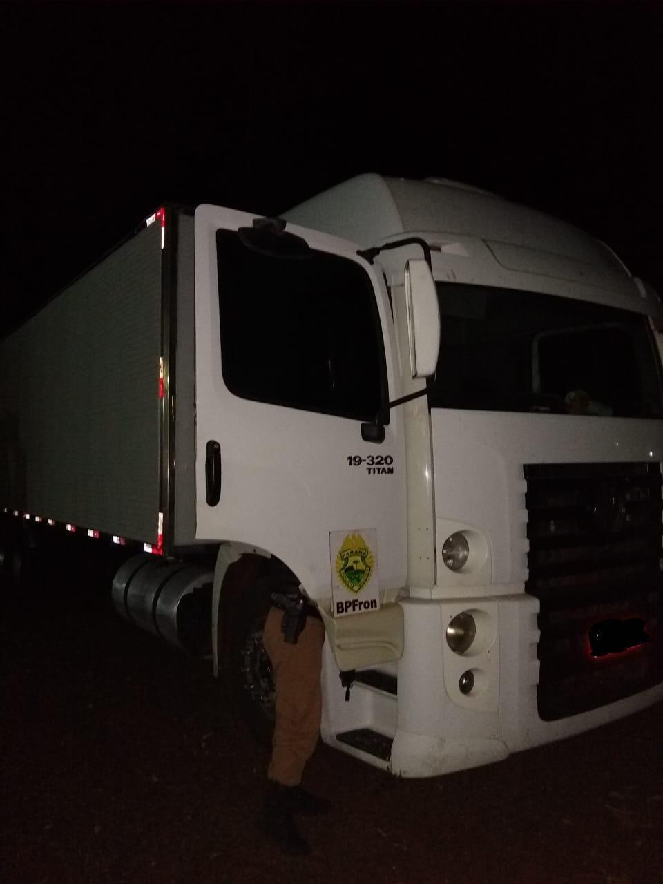 Na noite desta segunda feira 22-07-19 policiais militares do BPFRON, durante patrulhamento em um distrito de Toledo, abordaram um caminhão de cor branca que estava estacionado na lateral de um posto de combustível.