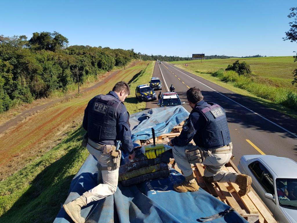 Ao verificar a carga do semi-reboque, foi encontrada, em meio aos pallets de madeira, grande quantidade de substância similar a maconha. O condutor, informou à equipe que: saiu de Foz do Iguaçu, foi até a cidade de Marechal Cândido Rondon, onde carregou o caminhão com os pallets de madeira e após, deslocou até a cidade de Pato Bragado; que em determinado local às margens da rodovia naquela cidade, um indivíduo desconhecido, levou o caminhão e o semi-reboque e retornou cerca de duas horas mais tarde com o entorpecente já oculto em meio a carga; que levaria o entorpecente até a cidade de Balneário Camboriú - SC, onde um indivíduo desconhecido o procuraria no primeiro posto de combustíveis da cidade; que pelo transporte receberia o valor de R$ 20.000,00.