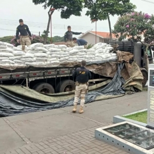 No início da manhã desta quarta-feira uma equipe da Polícia Rodoviária Federal de Cascavel estava em patrulhamento pela rodovia BR-467 em Toledo, proximidades da trincheira da avenida Maripá, quando suspeitou de um caminhão da marca volvo com placas da cidade de Diadema São Paulo e resolveu fazer abordagem.