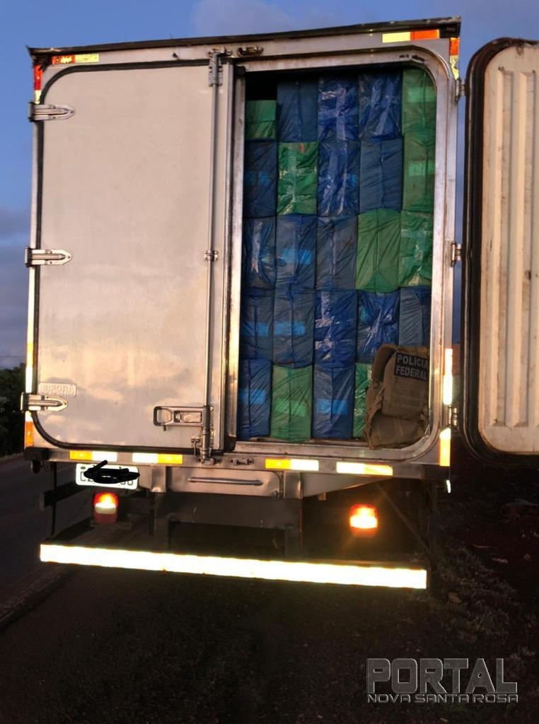 O veículo estava carregado com cerca de 500 caixas de cigarros contrabandeados do Paraguai, um prejuízo de cerca de R$ 1.400.000,00 para a organização criminosa.