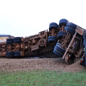 O caminhão Scania pertence a uma empresa que transposta adubo orgânico (esterco de aviário) e a carga foi retirada em uma propriedade da comunidade de Esquina Gaúcha e seria transportada para a cidade de Naviraí-MS.