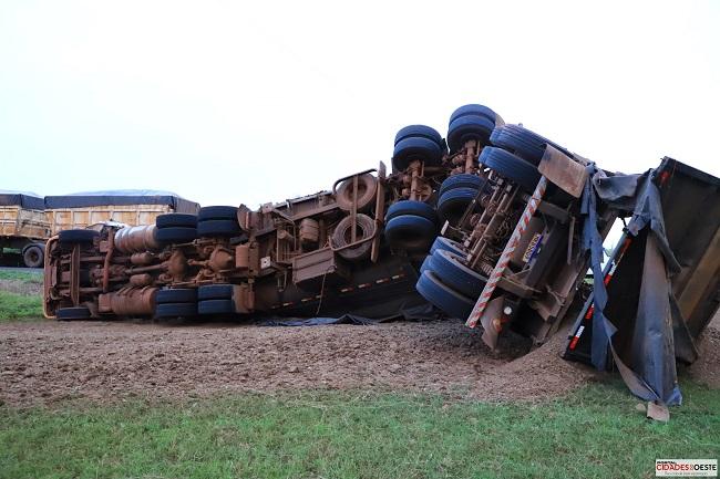 Por volta das 06h30 deste sábado (27), a equipe do SAMU de Itaipulândia foi acionada para atender um acidente ocorrido na estrada municipal que liga a comunidade de Esquina Gaúcha à cidade de Itaipulândia. Chegando no local, a equipe deparou-se com um caminhão Scania Bitrem, tombado às margens da via na curva conhecida como Curva do Moretto.