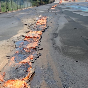 A pista está interditada em ambos os sentidos no local com cerca de 2 km de fila até o momento.