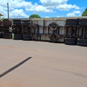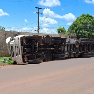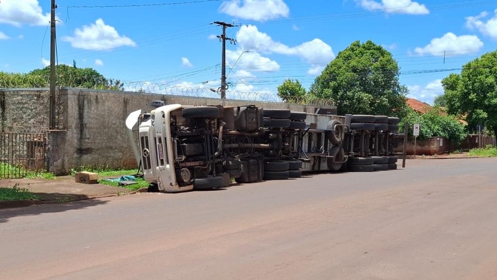 No final da manhã desta terça-feira 18, um caminhão que seguia pela rota utilizada por veículos de carga vindos de Toledo acabou tombando ao realizar a conversão para a Rua 1º de Maio, em Palotina.
